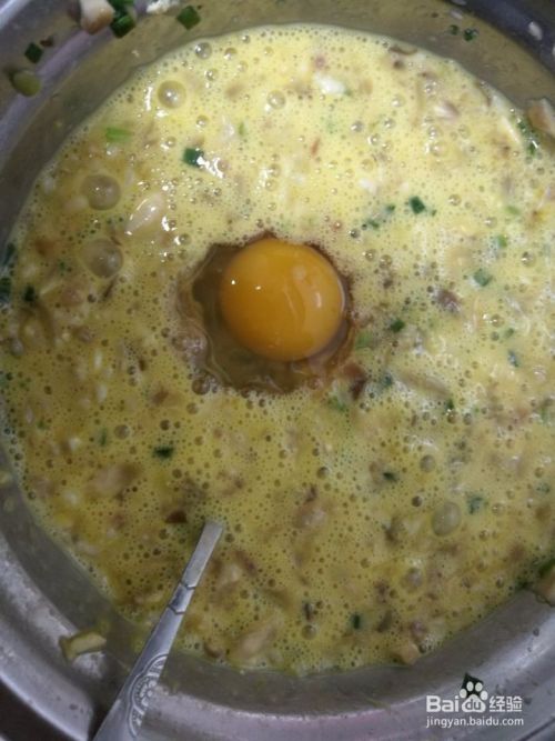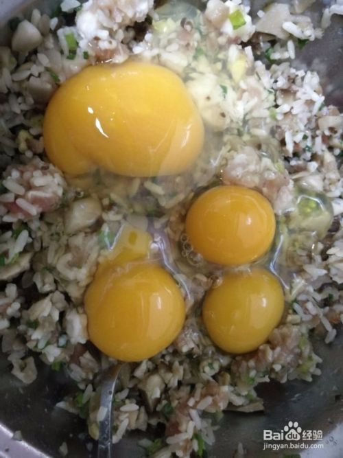 将鸡蛋分别打入到装有馅的碗里,并依次搅拌均匀。
