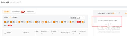 找到添加关键词框,点击添加关键词,进入添加窗口