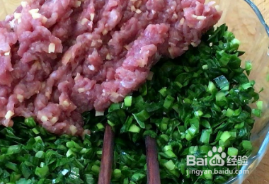 首先韭菜要选放心的,洗好的韭菜一定要控水,避免把过多的水分带进馅里;切碎的韭菜先放油拌匀,这叫“油封”,可以避韭菜直接接触盐分而析出过多水分。
