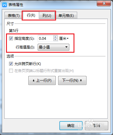 在弹出的对话框中再次在行、列选项中对尺寸进行自定义调整。设置完毕后,单击确定