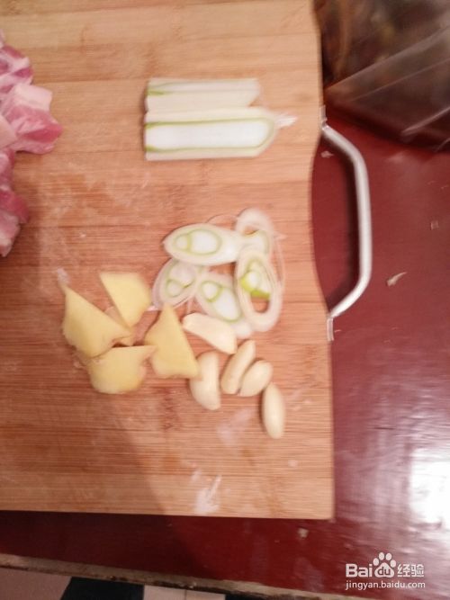 第二步,准备好需要的所有的调料,不然一会儿要手忙脚乱掉,这里的辅料需要葱姜蒜。