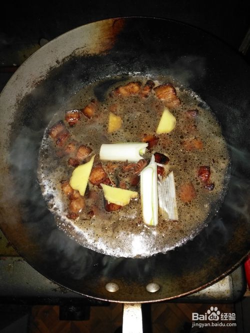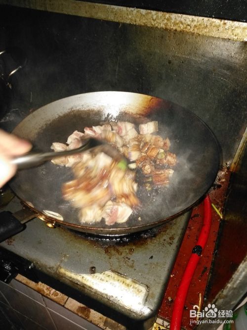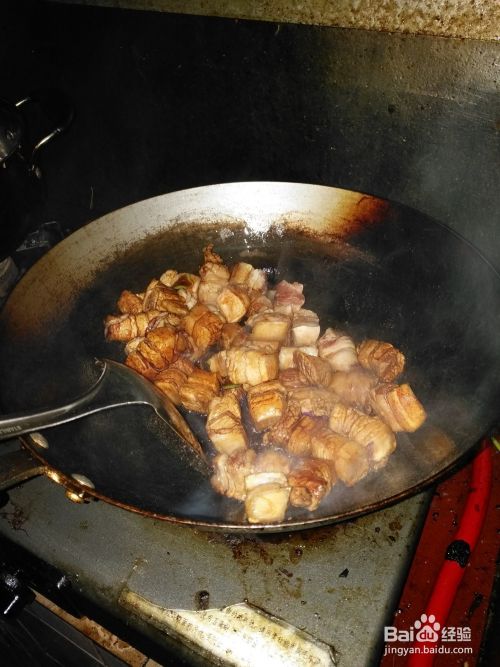 第六步:等待锅中的水快要干掉的时候放入鸡精,翻炒1分钟,美味的红烧肉就要出锅了。