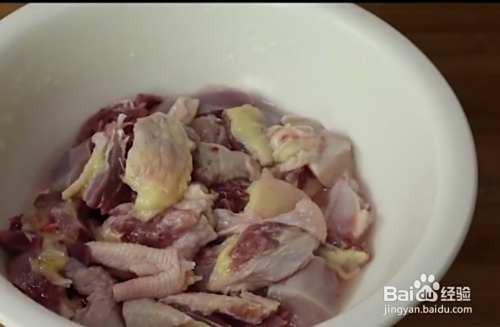 十分钟后,加入清水将鸡块清洗干净,放入碗中备用。