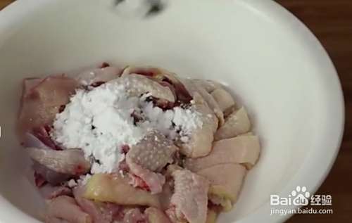 在碗中加入适量的淀粉,用手抓拌均匀,这样可以有效的去除血水和异味。