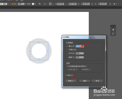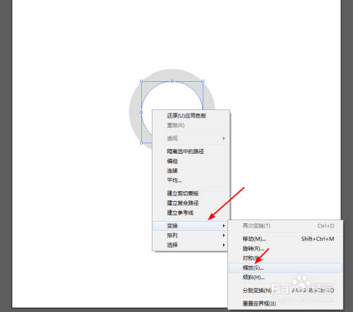 点击白色的圆形右键选择变换—缩放—复制圆形,并填充颜色,如图所示