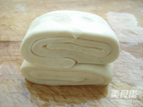 4将面团擀开、抹油、撒盐。