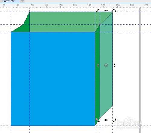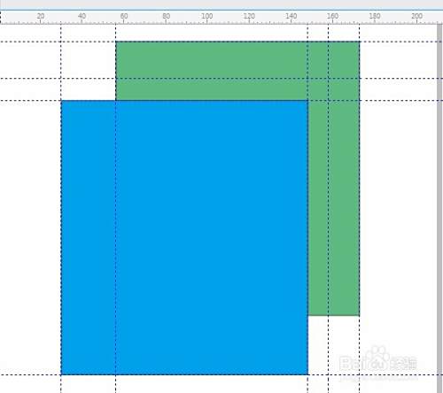用“矩形工具”沿辅助线画出右边矩形,并调整后填充颜色,用同样的方法画出另一个矩形,如图: