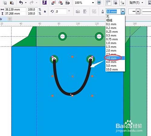 再复制小圆,用“贝塞尔工具”画出线段,在属性栏中选大小加粗,如图所示: