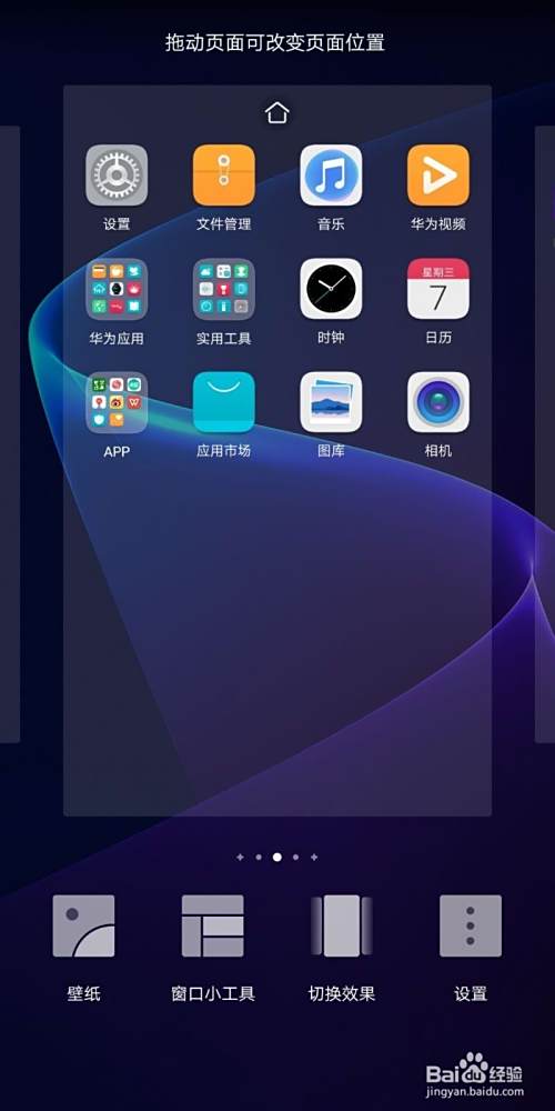 在手机首页按住几秒,就会出现桌面设置界面,点击右下角的 《设置》