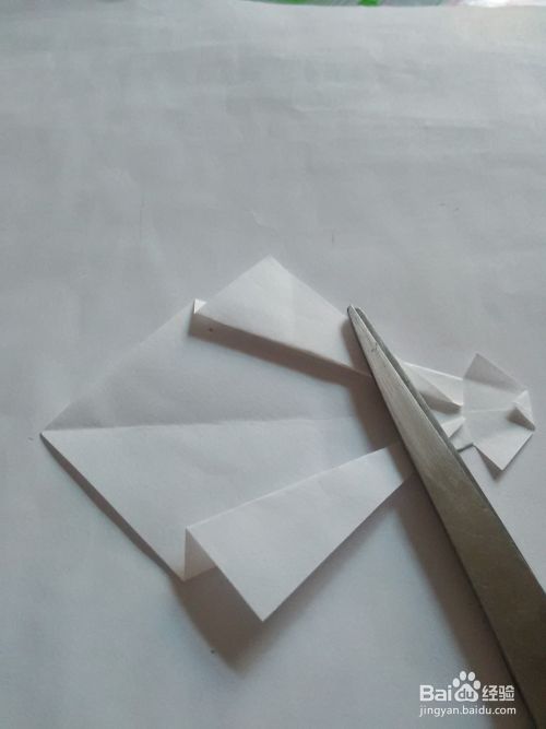 把折好的角再打开,用剪刀在右侧剪两个小口。
