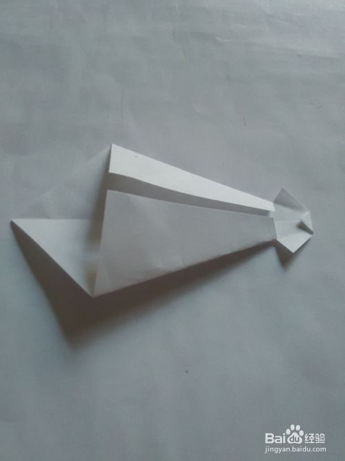 把中间的两条边向上下两侧打开,折成鱼的鳍。