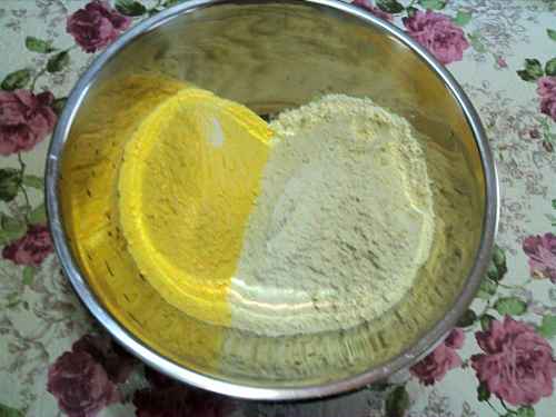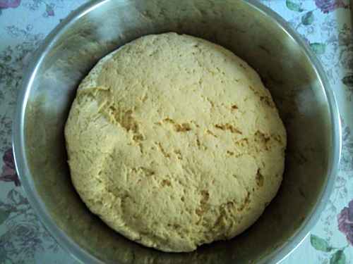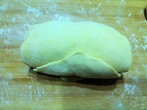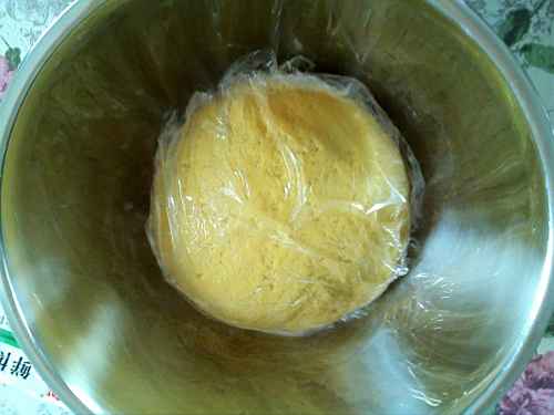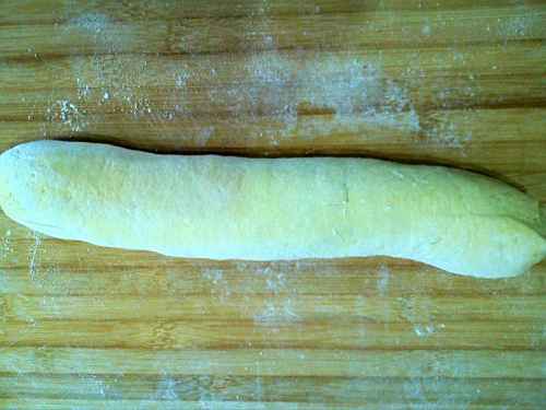 2加入酵母粉,用适量的温水合成光滑的面团。