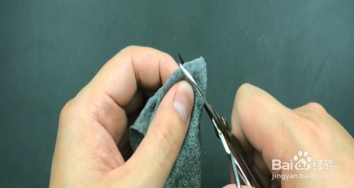 然后找到袜子脚跟的位置,对折一下,再用剪刀剪开一个小孔