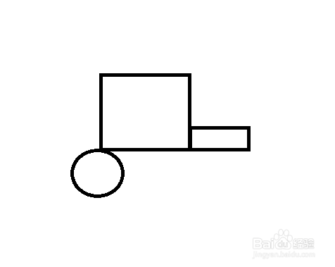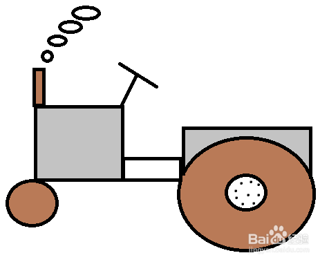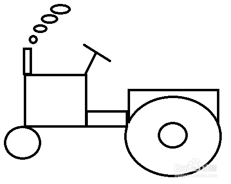 大长方形下方画2个圆形,是拖拉机的轮子。