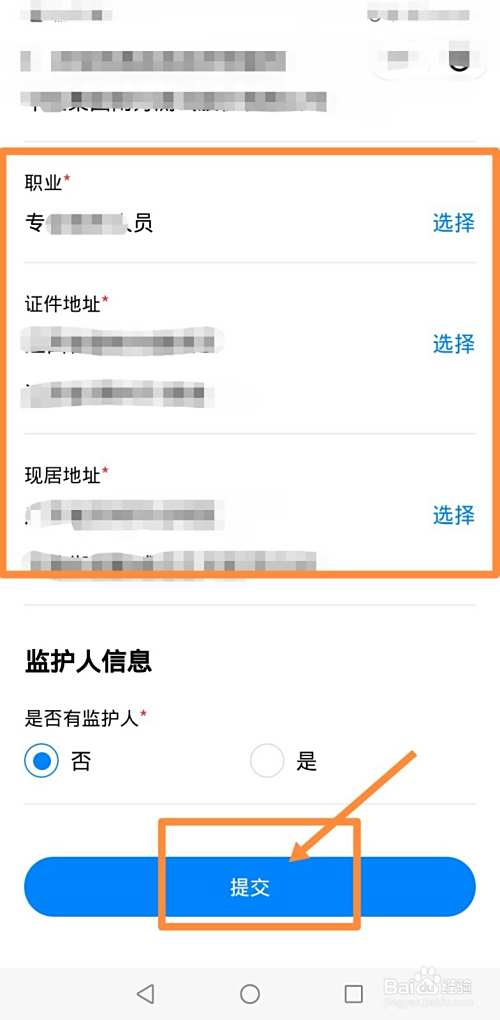 在对应内容下方的选择,重新添加职业,居住地址等个人信息,点击提交即可如下图所示: