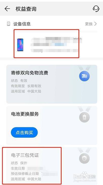 这个页面中可以查看设备信息,最下方就是电子三包凭证。