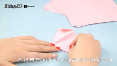 3把两侧的角向内沿着刚才的角对折。