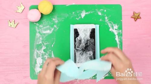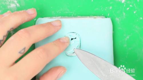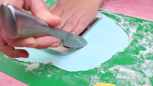 把淡蓝色的翻糖擀开
