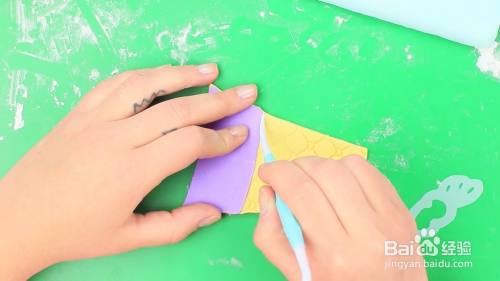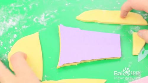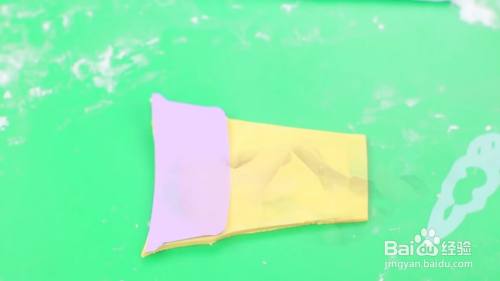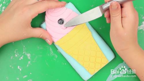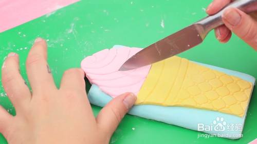在黄色的翻糖上面切出甜筒的形状