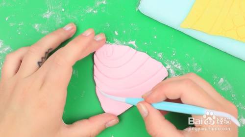 在粉红色的翻糖上面作出冰激凌奶油的形状