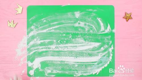 首先在一块板子上面撒上一些面粉