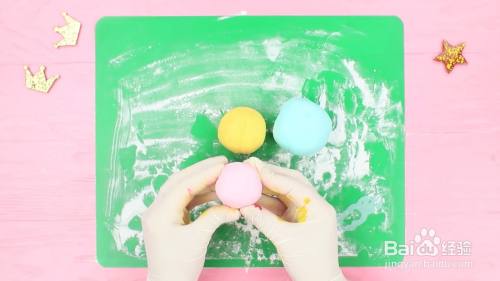 在三块翻糖里面加入不同颜色的食用色素