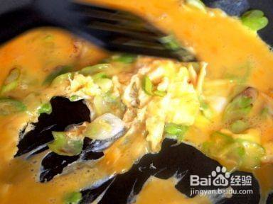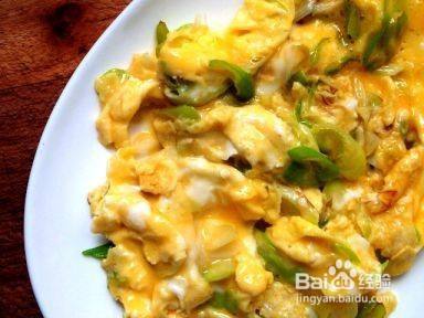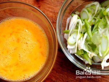 用韭苔代替平常惯用的洋葱,做成一道美味又简单的韭葱炒蛋