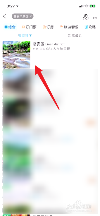 打开携程App软件界面,在顶部搜索栏输侮婶低入临安风之谷景区并点进良况入。