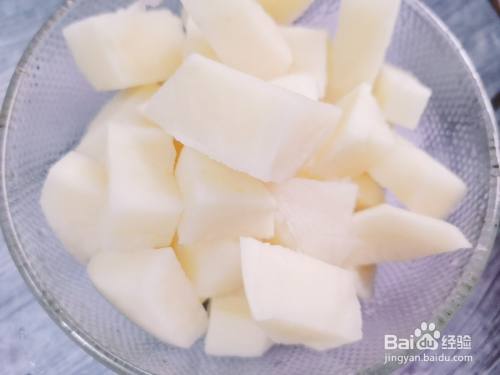 排骨洗干净,剁成块。土豆打皮也切成块,再过一遍水备用。