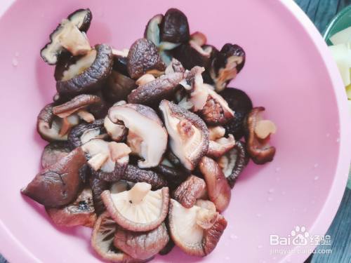 先把干香菇放在温水中泡半个小时以上。泡软后再洗干净,切成片备用