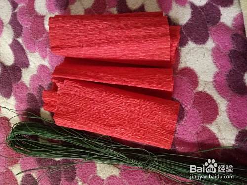 取出皱纹纸进行裁剪四张一样大小的长方形。
