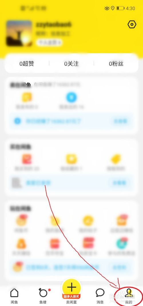 打开闲鱼APP后,点击下方菜单导航栏的“我的”,进入下一步;