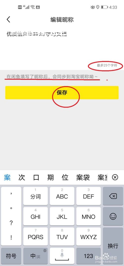 编辑昵称,注意不要超过25个字符,编辑完成后点击保存。