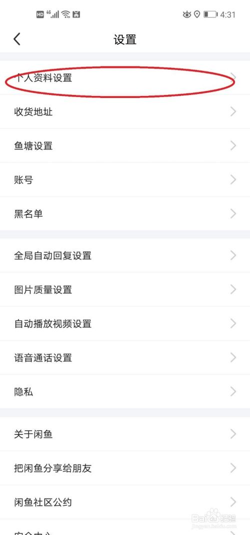 在设置界面选择“个人资料设置”,点击进入我的资料界面;