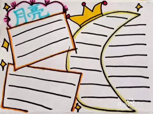 5. 接着,在手抄报上面的位置写出大标题“月亮”。
