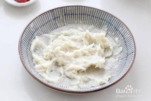 取出用勺子碾压成细腻的山药泥。