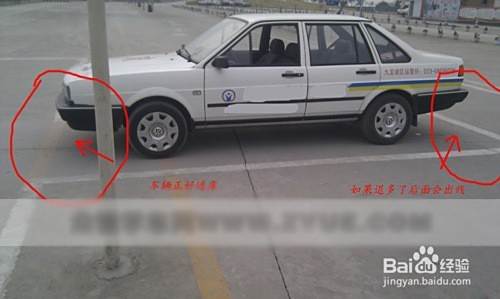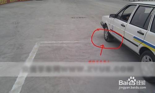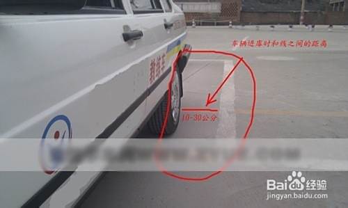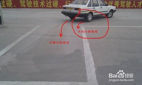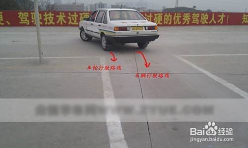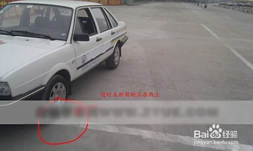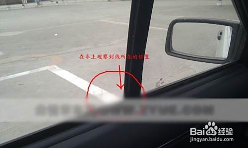 在车上观察,线到左窗立柱时停车,正好车轮压线
