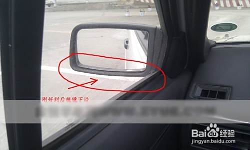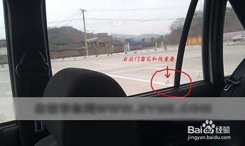 直退时刚好看到线在左后视镜下沿,也可以看右后窗窗花和库线重叠(两点任选一点看)