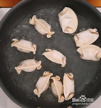 两颗鸡蛋中加少许盐打散,均匀倒入锅中,盖上锅盖中小火煎到底部焦黄