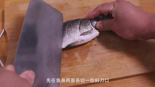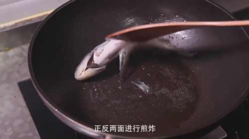 起锅烧油,放入鲫鱼,正反两面进行煎炸。