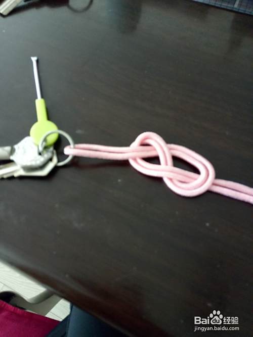将绳子拉紧,一个钥匙链绳结就编好了