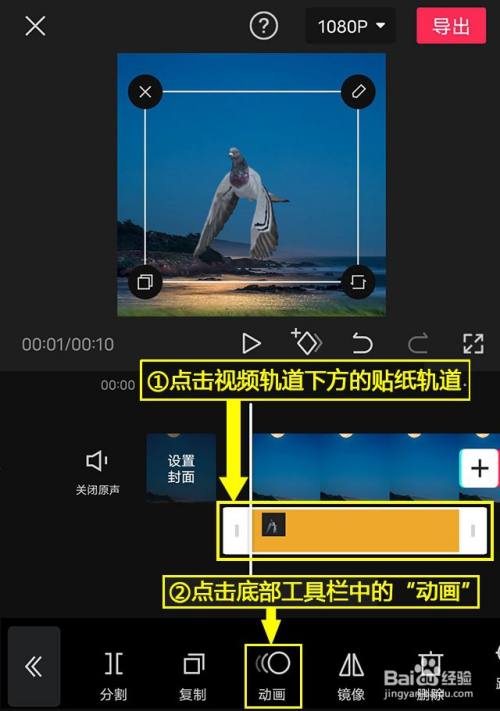 点击动画。点击视频轨道下方的贴纸轨道,点击底部工具栏中的“动画”。