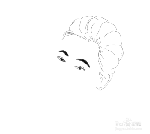 画好人物的头发之后再在头发的下面画出人物的两只眉毛,然后在眉毛下面画出人物的两只眼睛,如图所示:
