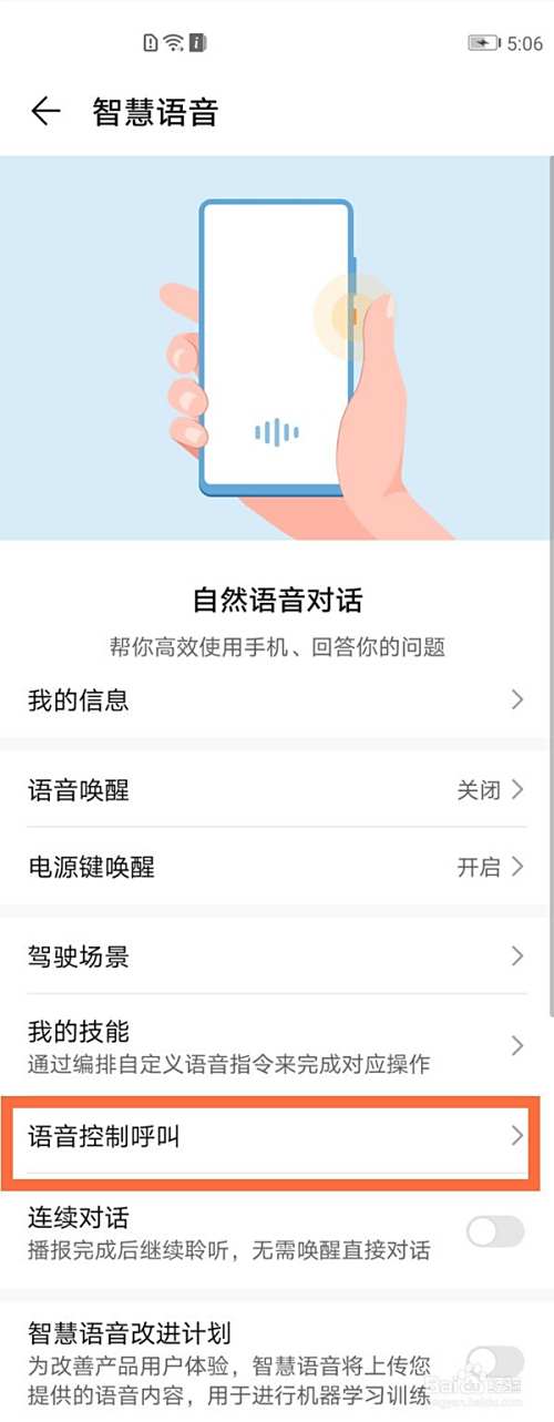 3、点击【语音控制呼叫】选项。