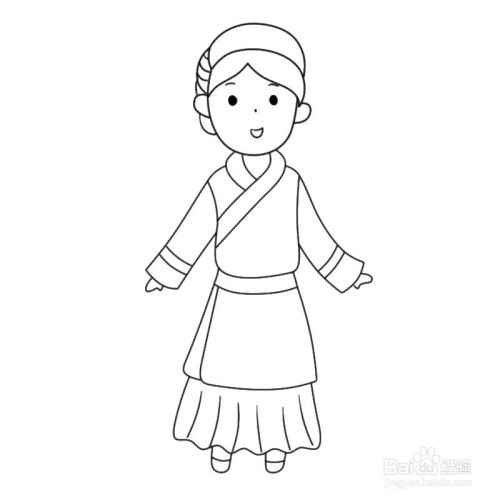 最后再给Q版门巴族女人画好长裙的裙摆和两只鞋子就完成了。