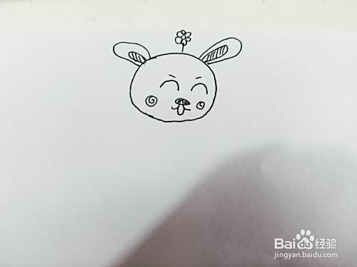 第二步,我们来画小白兔的两只耳朵,还有嘴巴鼻子和眼睛,如下图