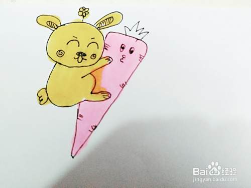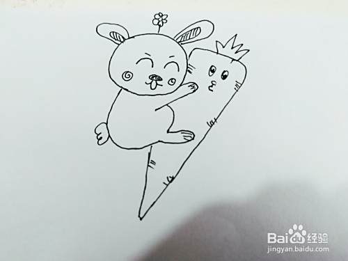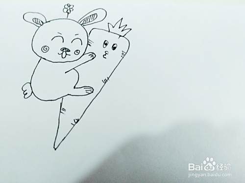 第四步,我们来画小白兔抱着的胡萝卜。如下图