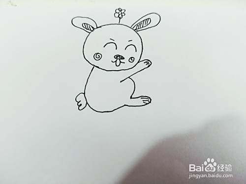 第三步,我们来画小白兔的身体轮廓。如下图