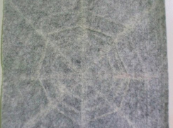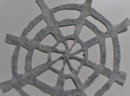 用粉笔在灰色毛毡布上画出蜘蛛网。八条线彼此相交,并且在每条线之间绘制线以形成八边形。