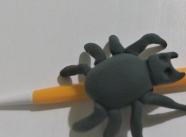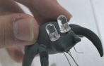 用黑色粘土做一只蜘蛛,还要为LED灯泡做好眼窝。